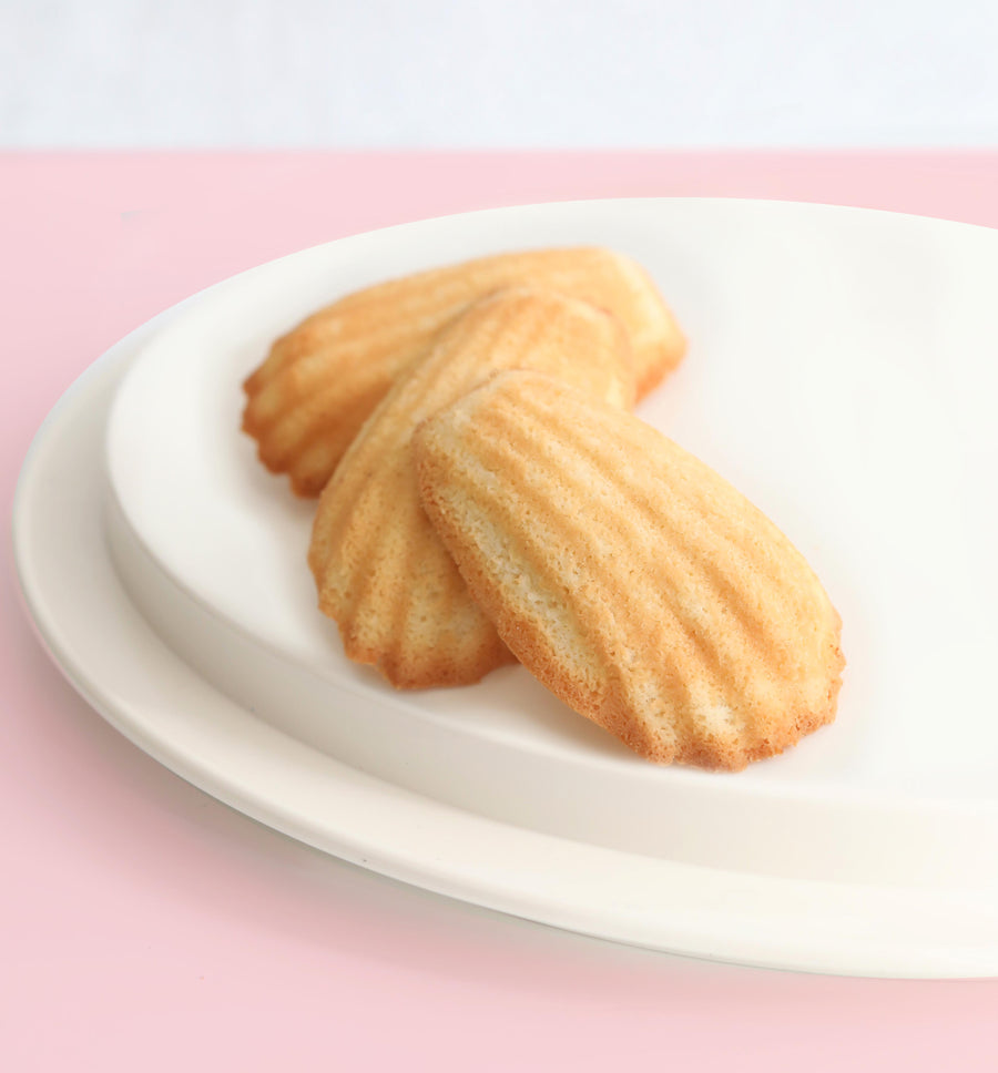 Our Madeleines are baked using a traditional French-style recipe, these buttery-soft, cake-like cookies are the perfect not-too-sweet treat. The delicate shell shape and golden brown exterior are a result of the careful baking process, while the light and fluffy inside melts in your mouth with every bite. A Madeleine cookie is perfect to pair with coffee or tea! We also offer individually wrapped Madeleines that are easy for school lunches, parties or travel.
